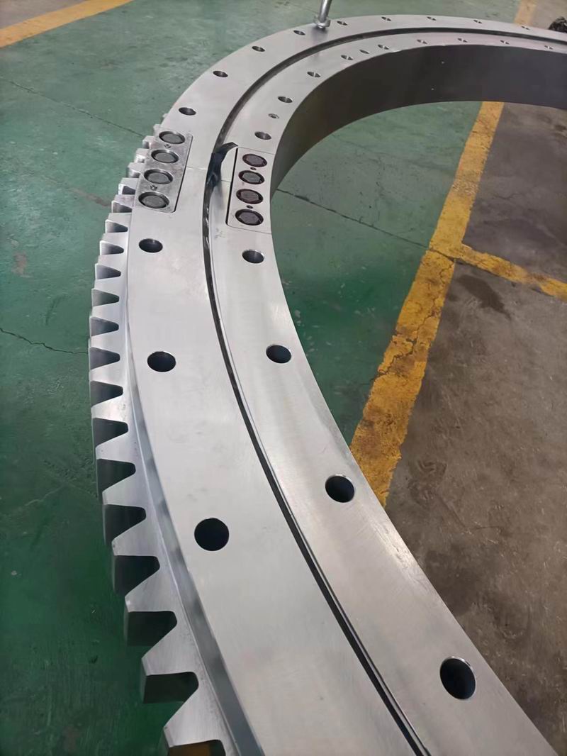 2023年10月,我公司根据客户定制的剖分式双排四点接触球转盘轴承完工,该轴承为外齿式双排四点接触球转盘轴承,为了客户方便安装,按照客户要求将产品圆周分为两段,分段式双排球转盘轴承的加工难度较大,加工周期长,尤其是带齿轮和双排球结构的加工难度较大。这是我公司第二次设计制造剖分式转盘轴承,为今后我们加工更多结构的剖分式转盘轴承积累的宝贵的经验。